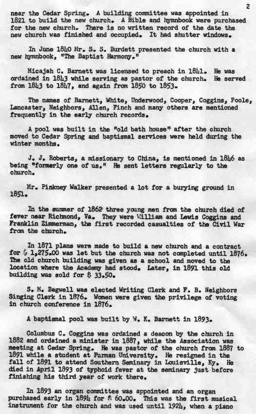 | Return to Cedar Spring Cemetery | Return to Church Navigation Page | Return to Photo's Cedar Spring Church |