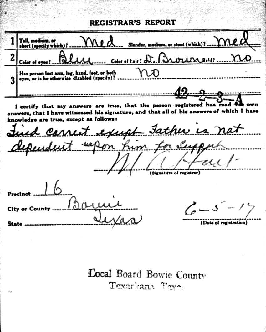 Charlie Pierce Perry - WWI Draft Card