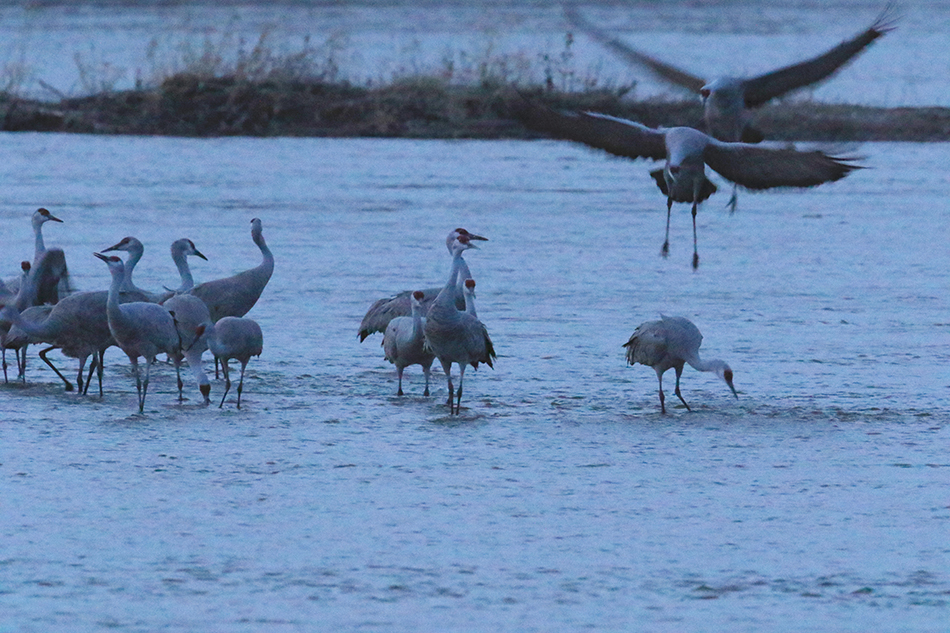 at night they roost in the Platte River, one of the last prairie rivers, during