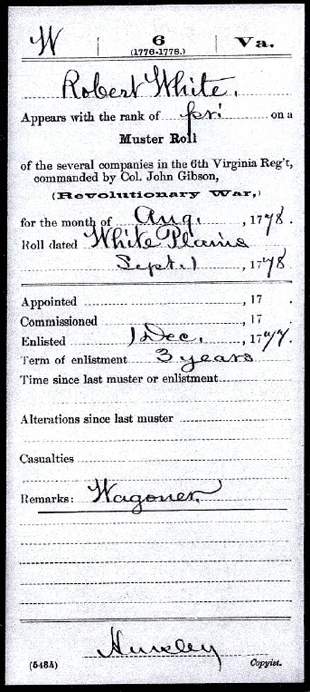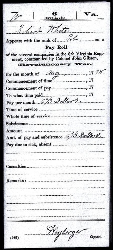 - Muster roll taken Apr 5th, 1778 says Robt. on Furlough. (Spring).